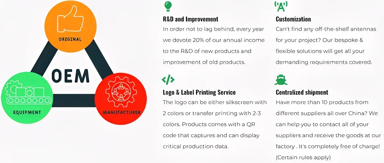 We have a powerful R&D team and can custom most of antenna products to suit your needs. We can provide any product you need in the industry and guide you to choose the right product to increase your sales.