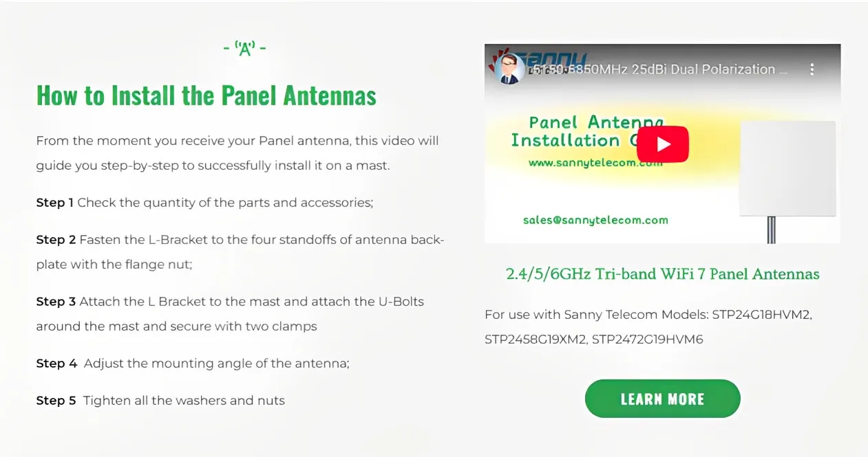 From the moment you receive your Panel antenna, this video will guide you step-by-step to successfully install it on a mast.