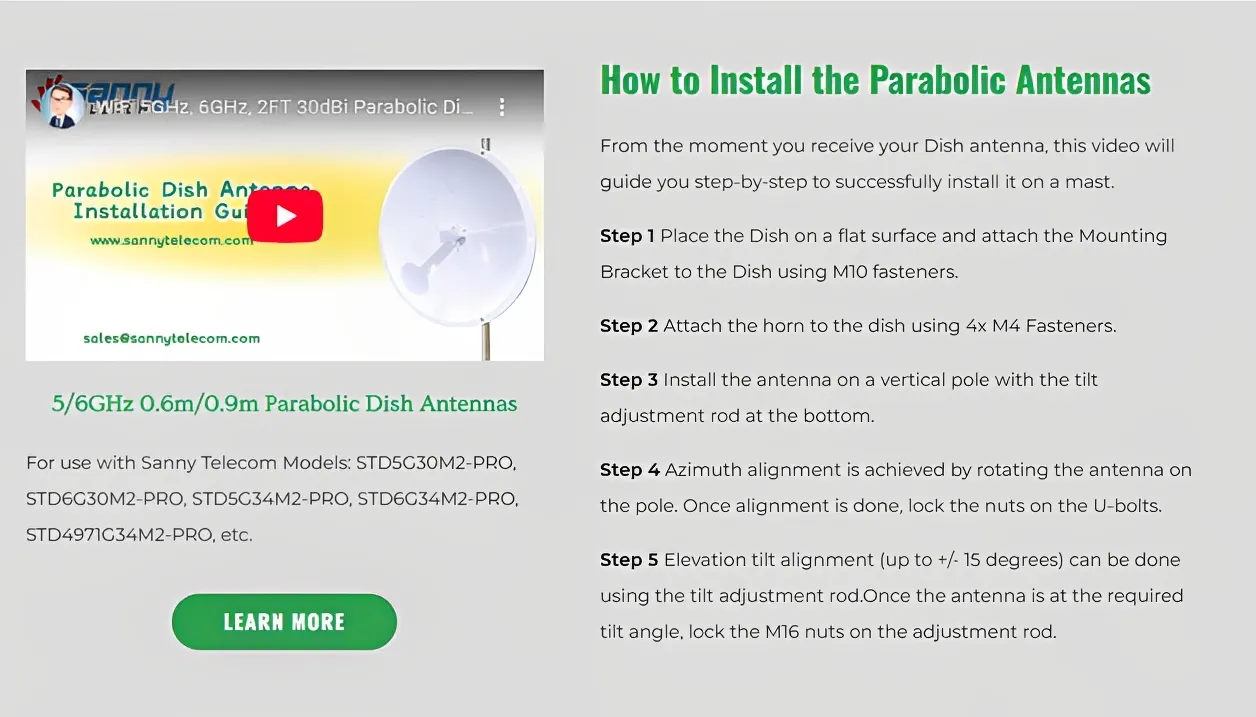 From the moment you receive your Dish antenna, this video will guide you step-by-step to successfully install it on a mast.