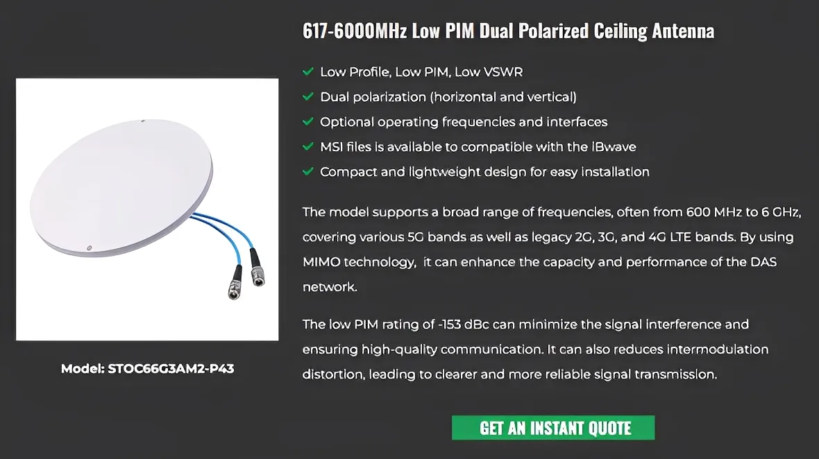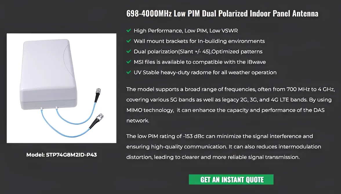 Indoor DAS antennas are installed inside buildings to provide reliable and consistent 5G coverage throughout the premises. These antennas are typically mounted on ceilings or walls and are connected to a central DAS controller. The controller receives the 5G signal from the network and distributes it to the antennas, ensuring that every corner of the building receives a strong and stable signal.