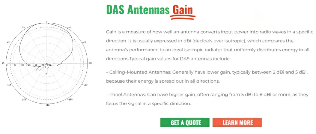 Outdoor DAS antennas, on the other hand, are used to extend 5G coverage to outdoor areas such as stadiums, campuses, and urban environments. These antennas are typically mounted on poles, streetlights, or rooftops and are connected to the DAS controller. They help to overcome the challenges of outdoor environments, such as signal interference and obstacles, by providing a strong and reliable 5G signal to users in the vicinity.