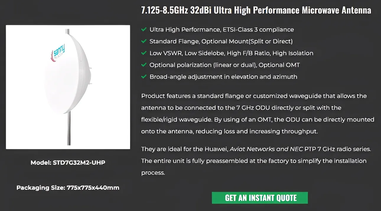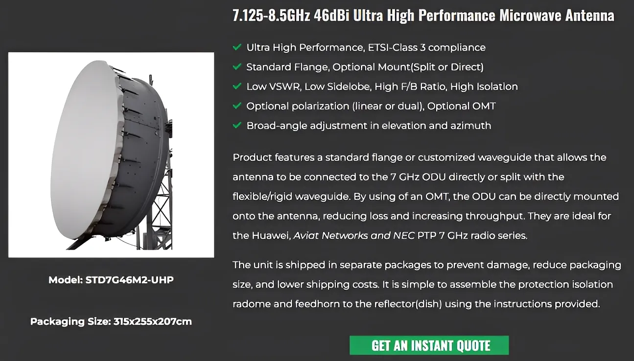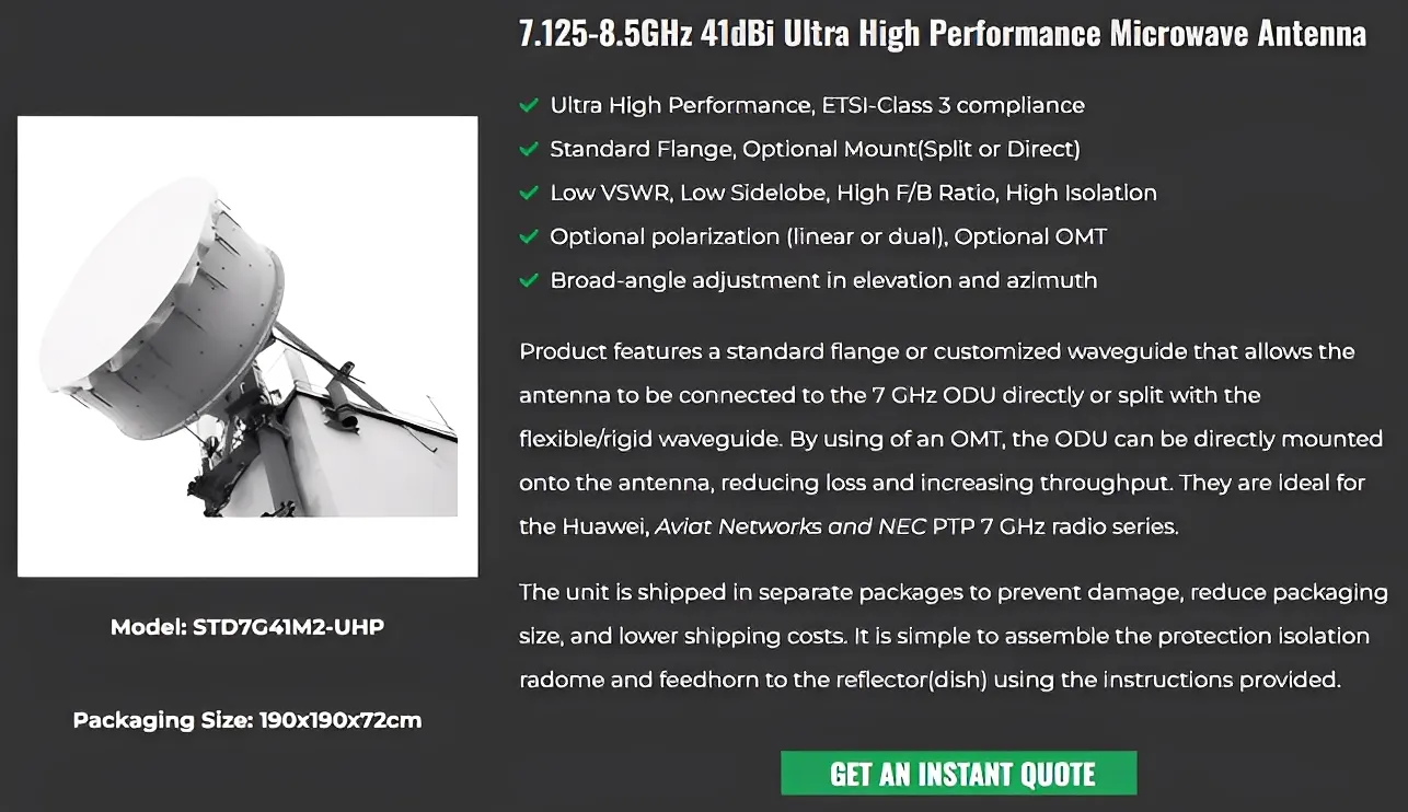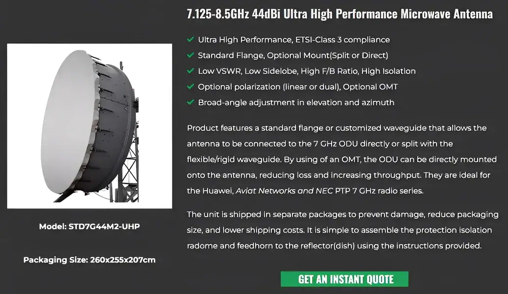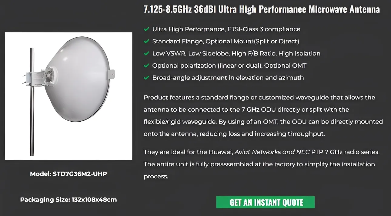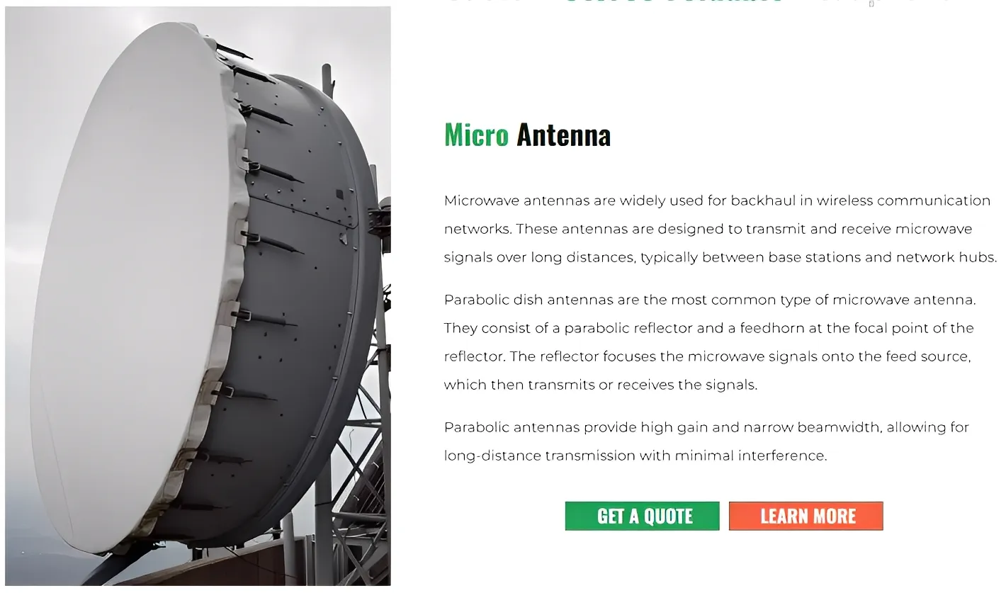 Microwave antennas are widely used for backhaul in wireless communication networks. These antennas are designed to transmit and receive microwave signals over long distances, typically between base stations and network hubs.