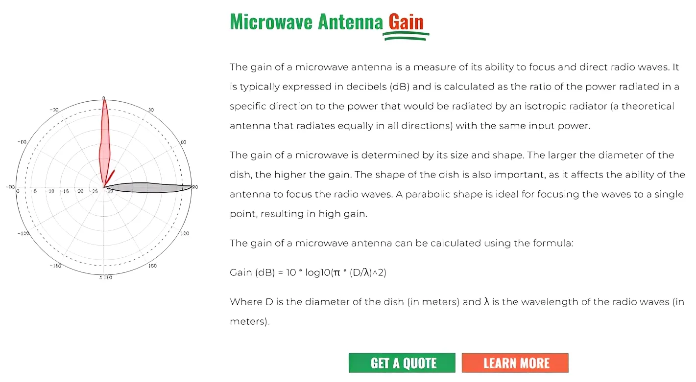 Parabolic dish antennas are the most common type of microwave antenna. They consist of a parabolic reflector and a feedhorn at the focal point of the reflector. The reflector focuses the microwave signals onto the feed source, which then transmits or receives the signals.