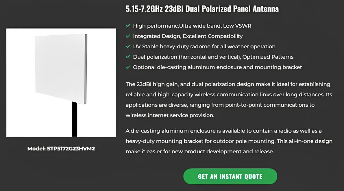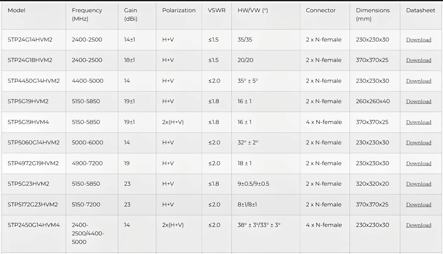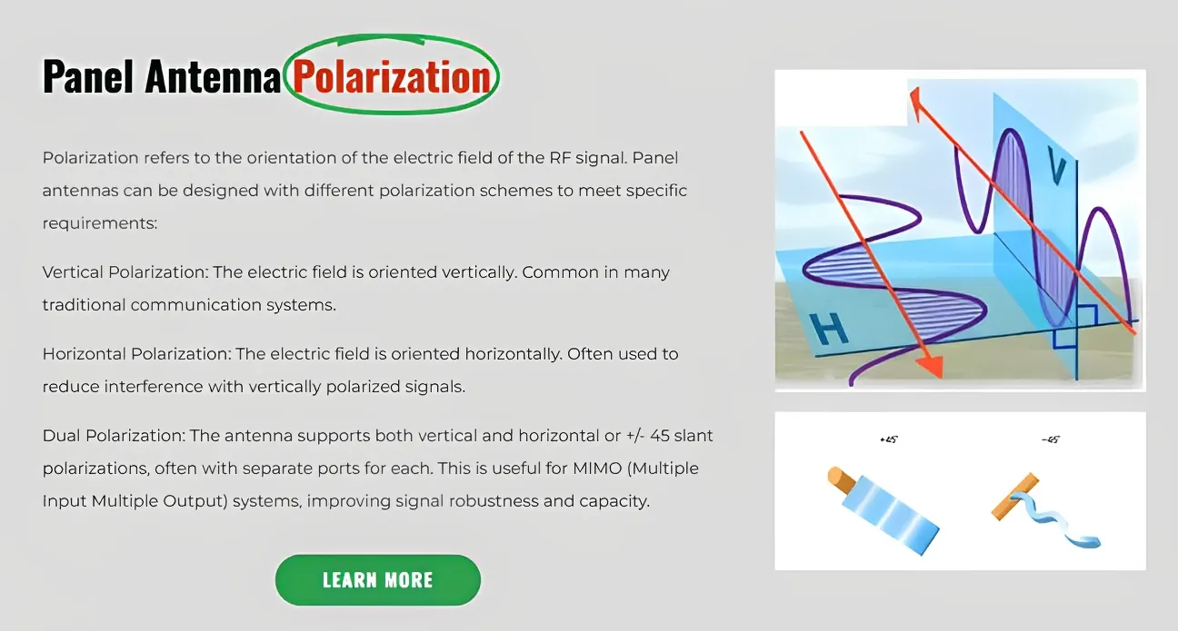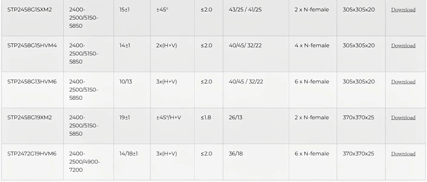 Polarization: Dual-polarized models improve signal quality and MIMO performance.