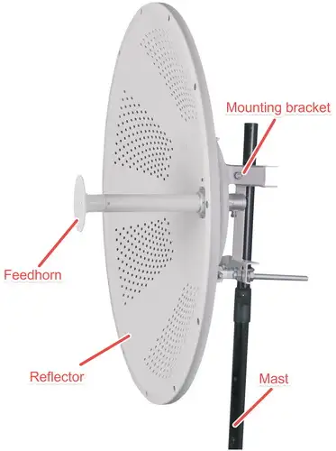 Solid Reflector: Its perfectly smooth, continuous surface offers the highest possible efficiency in signal reflection. To get the best gain, the shape of the dish needs to be accurate to within a tiny fraction of a wavelength, and a single, rigid piece is the best way to guarantee that precision across the entire surface.